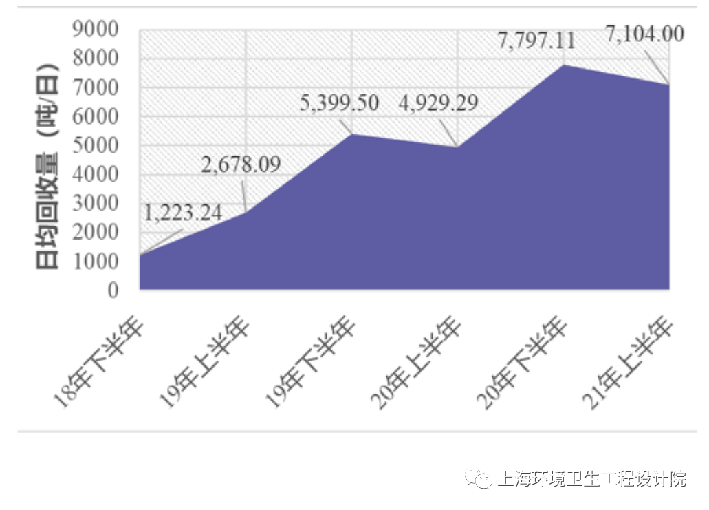 一、上海可回收物產(chǎn)量有多少?(一)可回收物總體統(tǒng)計(jì)情況2021年,上海市可回收物信息化平臺統(tǒng)計(jì)到主體企業(yè)上報(bào)可回收物量約5000噸/日,另外據(jù)相關(guān)部門估算的再生資源回收體系中約有2000噸/日為生活源可回收物,可回收物產(chǎn)量總計(jì)約7000噸/日。2018-2021年上??苫厥瘴锂a(chǎn)量(二)居民家庭可回收...