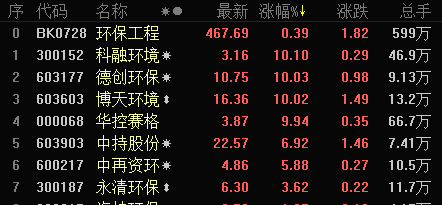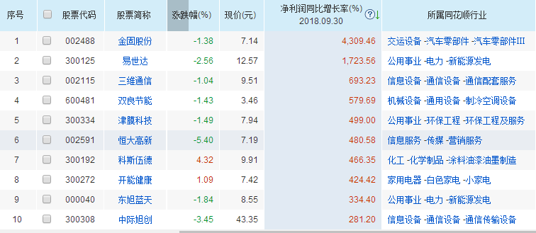 今年三季度環(huán)保股凈利潤(rùn)同比增長(zhǎng)排名前十