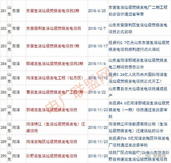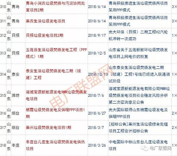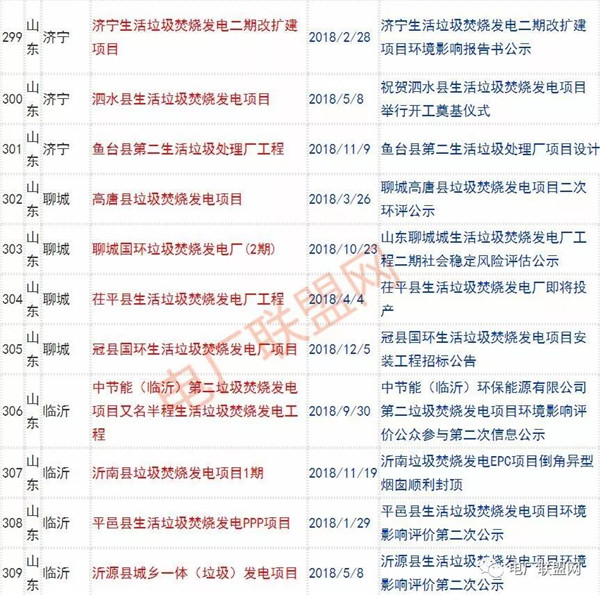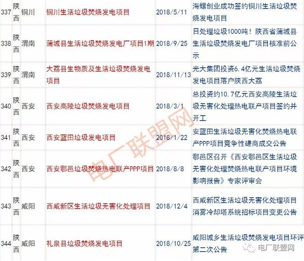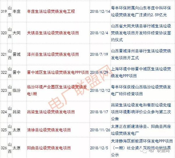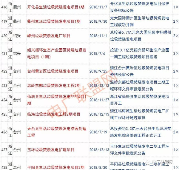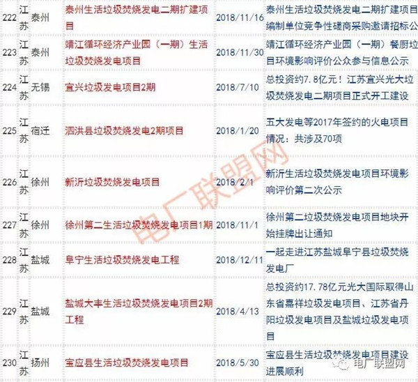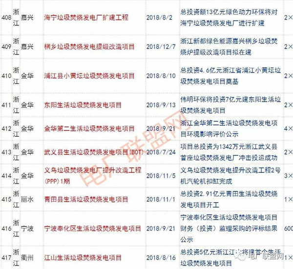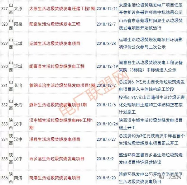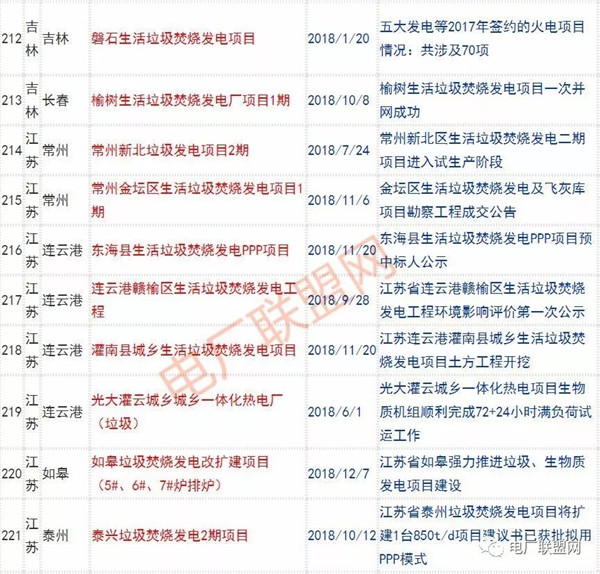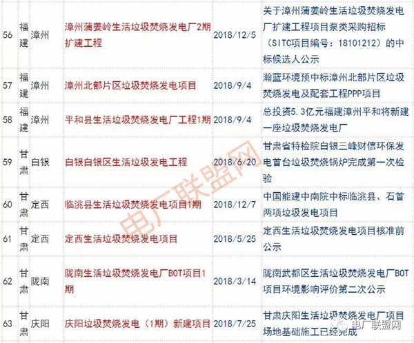 2018年新投入運(yùn)行的生活垃圾焚燒廠超過70座,在建項(xiàng)目166座,擬建項(xiàng)目201座.具體項(xiàng)目名單如下: