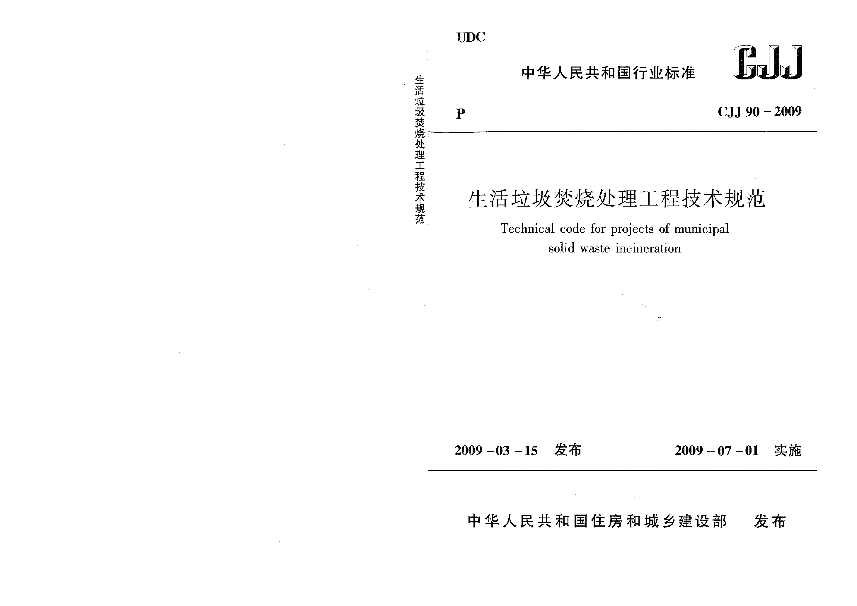 生活垃圾焚燒處理工程技術(shù)規(guī)范(CJJ 90-2009)