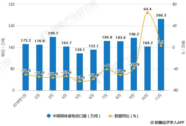 2018年1-11月中國固體廢物進(jìn)口統(tǒng)計(jì)及增長情況
