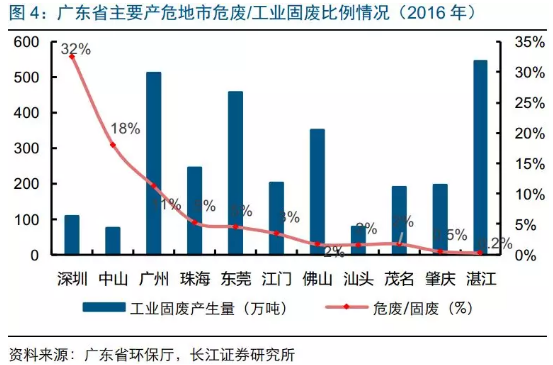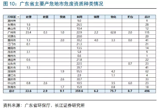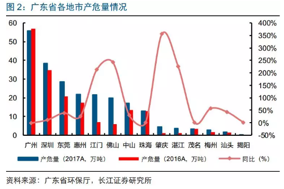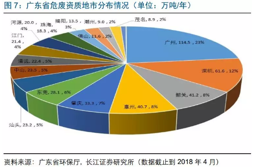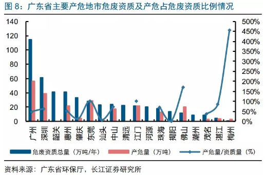 目前廣東危廢資質(zhì)達(dá)496萬(wàn)噸,廣州、深圳占36%