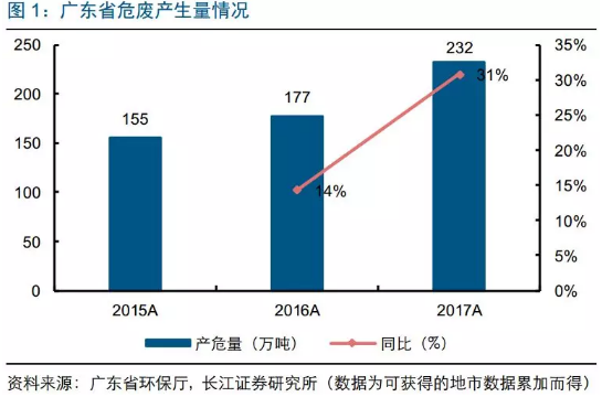 廣東省2017年危廢產(chǎn)量同比增31%至232萬(wàn)噸