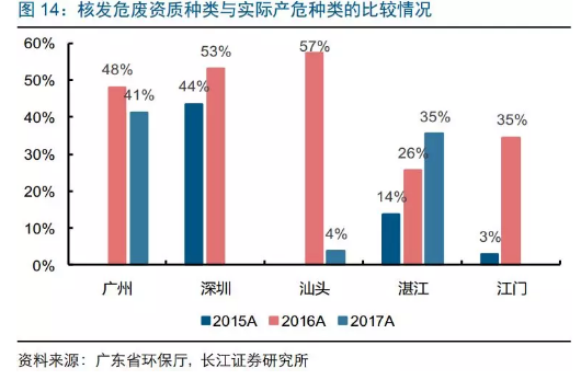 湛江/中山/珠海/深圳四地危廢產(chǎn)量/危廢資質(zhì)量均超過60%,危廢產(chǎn)能供給適中。