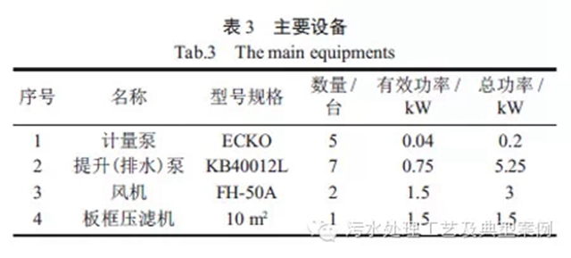 藥劑費:PAC,0.12 kg×1.8 元/kg =0.216 元/t;PAM,0.005 kg×24 元/kg=0.12 元/t;電費:裝機總?cè)萘考s為10 kW,實際運行約為5 kW,5kW×[0.50 元/(kWh)]/(2 m3/h)=1.25 元;人工費,實際運行時配備2 人(兼職),800 元×2 人/(30 d×20 t)=2.7 元/t。合計4.29 元/t。