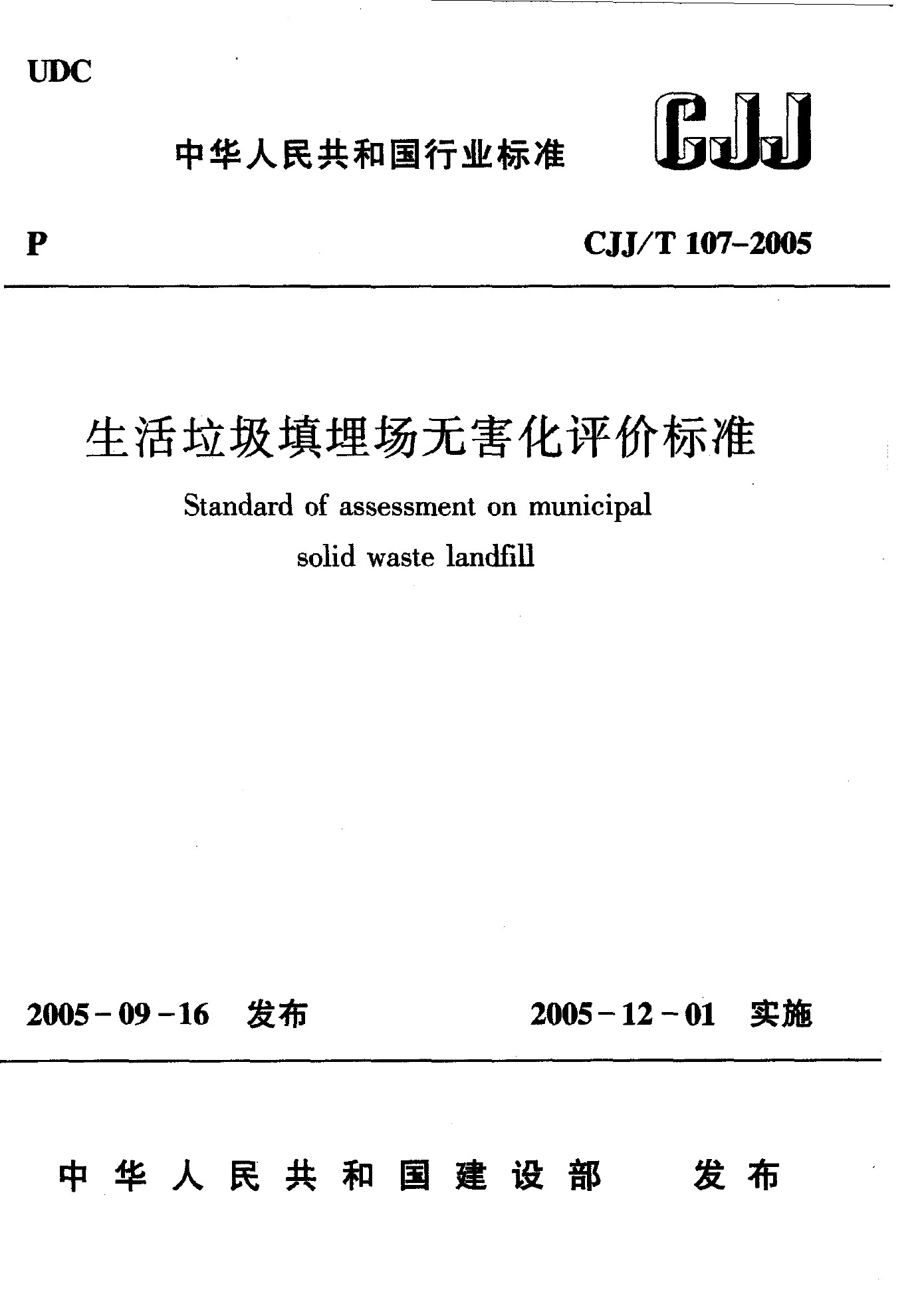 生活垃圾填埋場(chǎng)無害化評(píng)價(jià)標(biāo)準(zhǔn)(CJJ/T 107-2015)