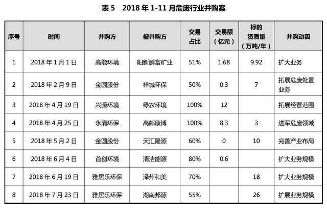 高門檻、高利潤、嚴監(jiān)管、大缺口”的危廢處理行業(yè)正在成為各路資本追逐的“香餑餑”。不完全統(tǒng)計結(jié)果顯示,僅2018年全國危廢行業(yè)兼并購數(shù)量就超過10起,資本的介入也加快了行業(yè)整合。