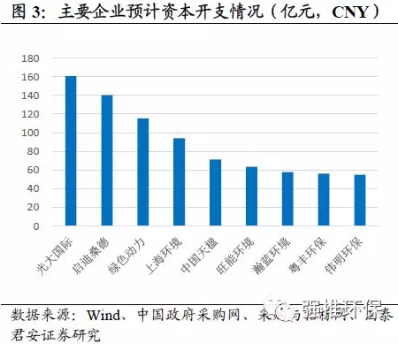 我們測算這9家公司項(xiàng)目全部落地需要超過800億資本開支。根據(jù)各公司在手項(xiàng)目平均噸投資及在手未投運(yùn)產(chǎn)能測算出各公司的預(yù)計(jì)資本開支情況。其中光大國際、啟迪桑德、綠色動力、上海環(huán)境若目前在手所有項(xiàng)目都落地,預(yù)計(jì)資本開支都將大于100億元;而中國天楹、旺能環(huán)境、瀚藍(lán)環(huán)境、粵豐環(huán)保、偉明環(huán)保預(yù)計(jì)資本開支約在50-70億元之間。