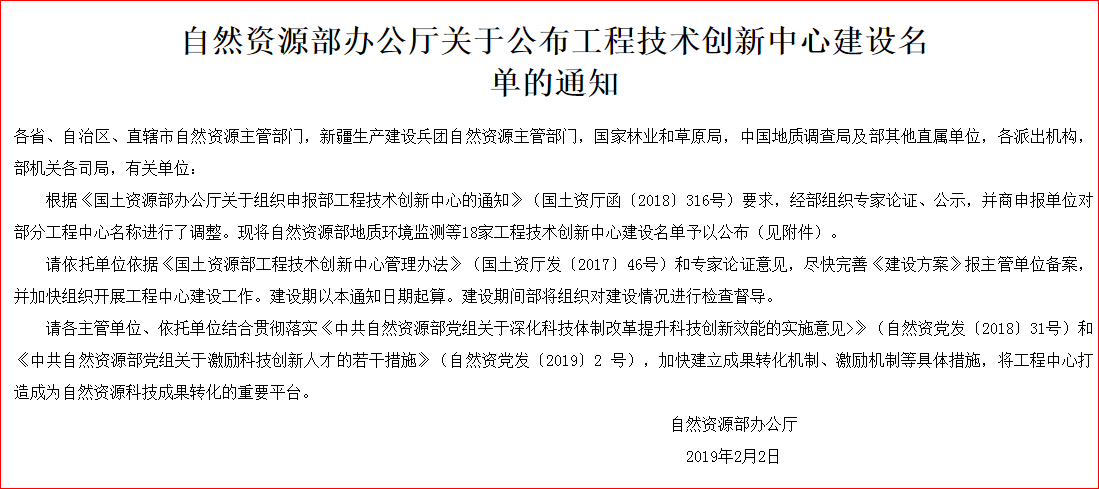 據(jù)了解,2019年2月2日,自然資源部辦公廳公開(kāi)發(fā)布《自然資源部辦公廳關(guān)于公布工程技術(shù)創(chuàng)新中心建設(shè)名單的通知》,自然資源部工程技術(shù)創(chuàng)新中心建設(shè)名單中,江蘇綠之源生態(tài)建設(shè)有限公司赫然在列。