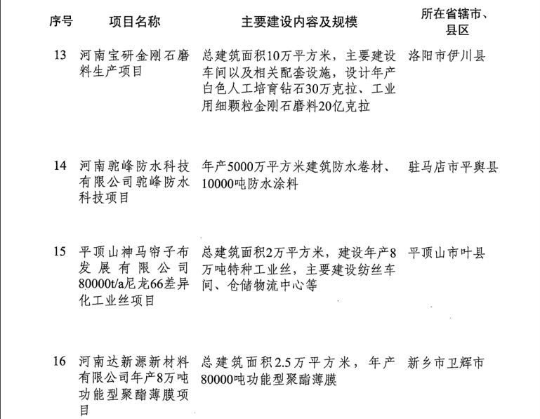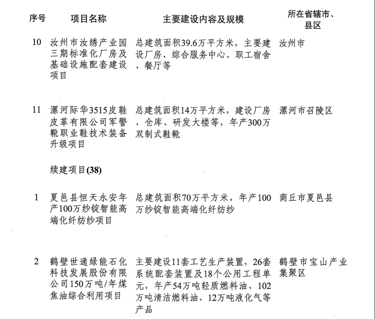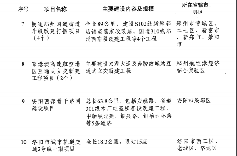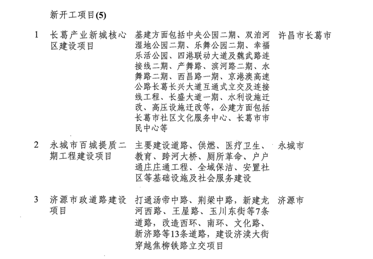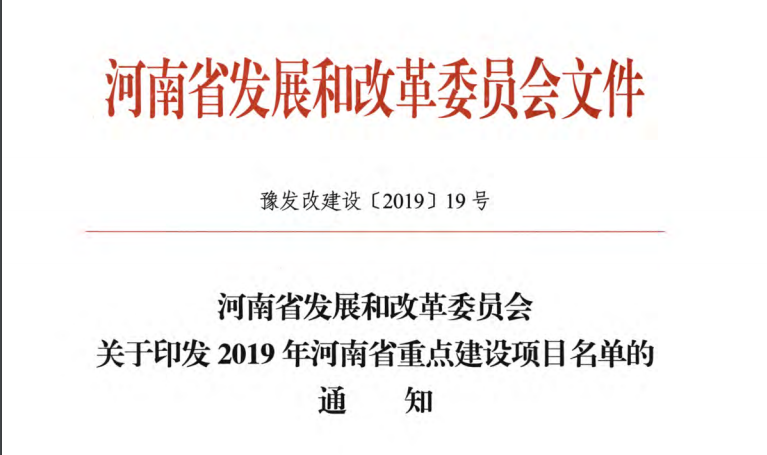 河南省發(fā)改委發(fā)布《關(guān)于印發(fā)2019年河南省重點(diǎn)建設(shè)項(xiàng)目名單的通知》。名單共列項(xiàng)目910個(gè),總投資3.1萬(wàn)億元,2019年計(jì)劃完成投資7939億元,涵蓋了產(chǎn)業(yè)轉(zhuǎn)型發(fā)展、創(chuàng)新驅(qū)動(dòng)、基礎(chǔ)設(shè)施、新型城鎮(zhèn)化、生態(tài)環(huán)保、民生和社會(huì)事業(yè)六大領(lǐng)域18個(gè)行業(yè)。其中計(jì)劃竣工項(xiàng)目149個(gè)、續(xù)建項(xiàng)目433個(gè)、計(jì)劃新開(kāi)工項(xiàng)目317個(gè)、前期項(xiàng)目11個(gè)。