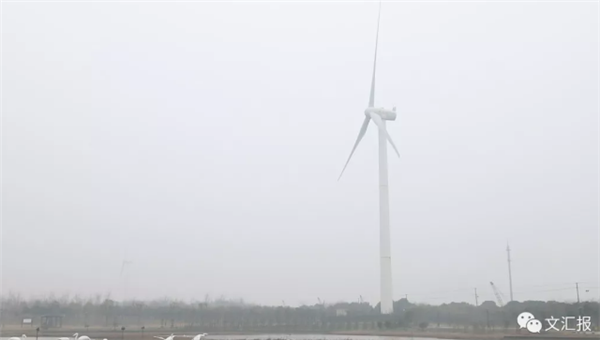 細(xì)雨蒙蒙,車駛?cè)肷虾@细凵鷳B(tài)環(huán)?;亍蓚?cè)樹木成林,草坪成片。生態(tài)苑里,“烏篷聽雨”“蘆花鷺影”景致別樣,儼然一座郊野公園。不遠(yuǎn)處,白色的風(fēng)力發(fā)電機(jī),在高空中緩緩轉(zhuǎn)動(dòng)3支葉片。不時(shí)有運(yùn)輸集卡從身邊駛過(guò)。