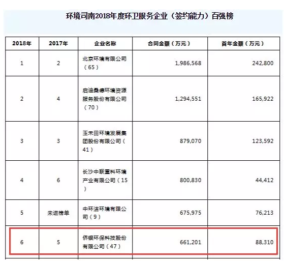 在這幾千家企業(yè)中,僑銀環(huán)保憑借較強(qiáng)實(shí)力,在2016年度新簽合同金額中位列全國十強(qiáng),在2017和2018年分別位列第五和第六名。
