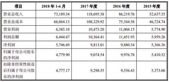 營收增速是很快,但同期凈利潤為5366.36萬元、9880.34萬元、9813.01萬元和5746.69萬元,2017年出現(xiàn)了負(fù)增長,扣非凈利潤下降的幅度更大,典型的增收不增利。