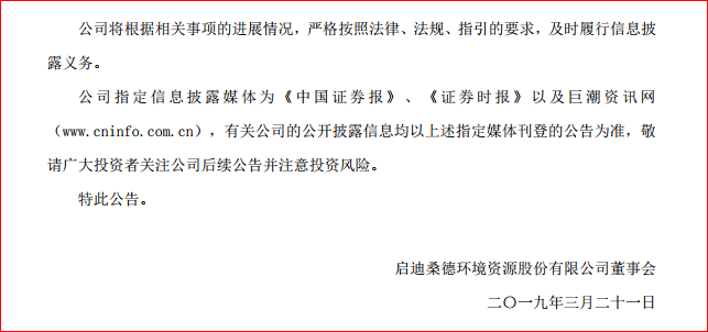 相關資料下載:啟迪桑德環(huán)境資源股份有限公司 關于間接控股股東股權變更重大事項的提示性公告.PD