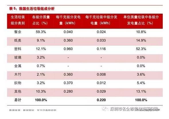 1) 垃圾分類將提高垃圾熱值;我國(guó)生活垃圾平均熱值較發(fā)達(dá)國(guó)家低,主要原因是廚余垃圾占比較 高。分析單位質(zhì)量垃圾的發(fā)電量,熱值較高的塑料,其貢獻(xiàn)度達(dá)到 52.3%,其次為紙類、織 物等,而餐廚垃圾的貢獻(xiàn)度僅為 10.8%。我國(guó)有部分城市已經(jīng)開(kāi)始了垃圾分類的試點(diǎn),實(shí)行 干濕分離,生活垃圾中餐廚垃圾占比下降,垃圾熱值有望提升。