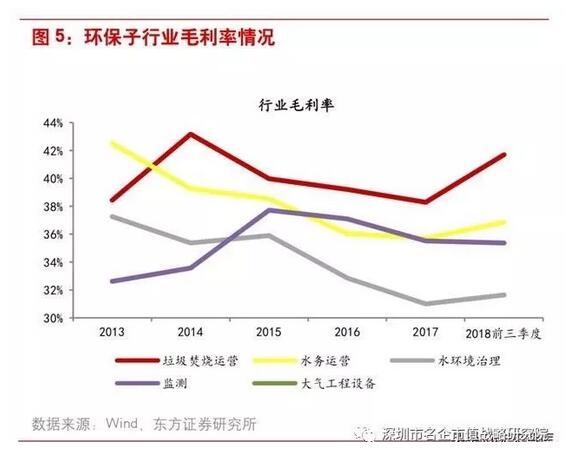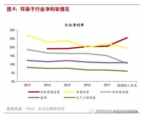 垃圾焚燒行業(yè)的盈利能力總體維持穩(wěn)定,毛利率和凈利率在環(huán)保行業(yè)居于前列。2013-2018 年相 關(guān)上市公司的毛利率保持在 40-45%左右的水平,凈利率 20%以上,且呈現(xiàn)逐年升高的趨勢(shì)。
