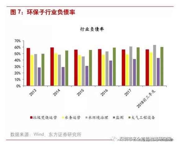 2013-2017 年,上海環(huán)境的經(jīng)營(yíng)性現(xiàn)金流凈額/凈利潤(rùn)值約為 100-390%;偉明環(huán)保約為 60-230%, 瀚藍(lán)環(huán)境則為 120-290%。旺能環(huán)境 2017 年經(jīng)營(yíng)性現(xiàn)金流凈額/營(yíng)收為 162%。中國(guó)天楹的經(jīng)營(yíng)性 現(xiàn)金流凈額/凈利潤(rùn)比在-10-190%之間波動(dòng),而綠色動(dòng)力的值僅在 2016 年為正,其他年份均為負(fù)??鄢Y本開(kāi)支后,偉明環(huán)保在 2013-2017 年實(shí)現(xiàn)正的自由性現(xiàn)金流,瀚藍(lán)環(huán)境在 2016-2017 年實(shí) 現(xiàn)了正的自由現(xiàn)金流。旺能環(huán)境、偉明環(huán)保和上海環(huán)境的資產(chǎn)負(fù)債率分別為38.4%、43.1%和 49.3%, 處于同行較低的位置,擁有比較充裕的融資空間。
