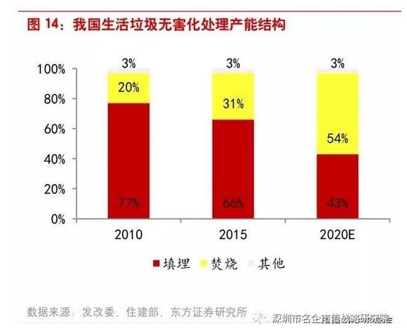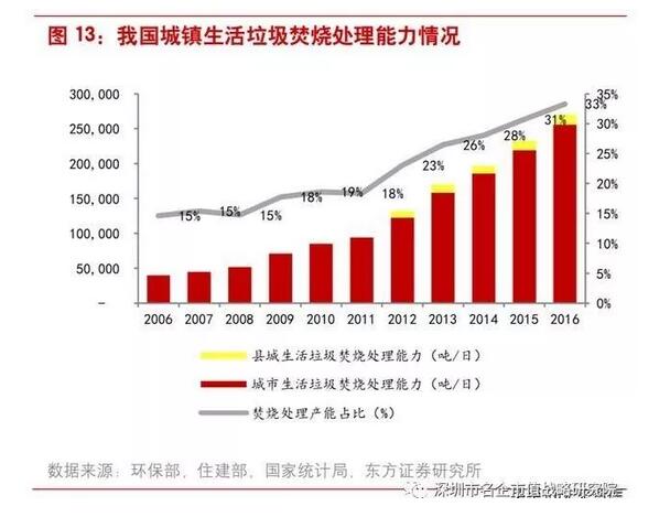 傳統(tǒng)的垃圾無(wú)害化處理主要有三種方式:衛(wèi)生填埋、堆肥以及焚燒。相較于其他的處理方式,垃圾 焚燒能更有效的實(shí)現(xiàn)“減量化、資源化、無(wú)害化”。由于填埋用地緊張,環(huán)保排放要求提高,焚燒 正在成為生活垃圾處理的主要方式。2010 年以后相關(guān)政策持續(xù)落地,生活垃圾焚燒行業(yè)步入高速 發(fā)展期:2010 年發(fā)改委明確提出推廣城市生活垃圾發(fā)電技術(shù);2011 年發(fā)改委、環(huán)保部等要求土地 資源緊缺、人口密度高的城市要優(yōu)先采用焚燒處理技術(shù);2012 年,發(fā)改委發(fā)布《關(guān)于完善垃圾焚 燒發(fā)電價(jià)格政策的通知》確定垃圾焚燒發(fā)電執(zhí)行全國(guó)標(biāo)桿電價(jià)每千瓦時(shí) 0.65 元,從國(guó)家層面上明 確垃圾焚燒發(fā)電補(bǔ)貼標(biāo)準(zhǔn);同年城鎮(zhèn)生活垃圾十二五規(guī)劃發(fā)布;2016 年城鎮(zhèn)生活垃圾十三五規(guī)劃 發(fā)布,其中提到要新增垃圾焚燒處理能力 35.6 萬(wàn)噸/日。