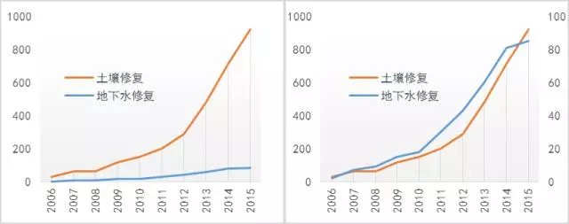 縱觀發(fā)達國家土壤修復行業(yè)近年走過的路線以及國家近年出臺的有關(guān)土壤修復行業(yè)的法律法規(guī)及指導性文件,我們基本可梳理出我國未來土壤修復行業(yè)的發(fā)展路徑和趨勢。污染場地是由土壤和地下水共同構(gòu)成的有機統(tǒng)一體,雨水垂直入滲以及地下水流經(jīng)污染過的土壤時,污染物將從土壤相以溶解和解吸等作用進入地下水相,而污染后的地下水在流經(jīng)未污染或已修復的土壤時,其中的污染物亦會通過土壤的吸附作用從地下水相傳遞到土壤相上。這種土壤和地下水的相互作用,使得場地修復中,土壤和地下水聯(lián)合治理尤為重要,重土壤而忽視地下水必然會導致場地二次污染!事實上,業(yè)內(nèi)專家人士就此早已達成共識。北京建工環(huán)境修復股份有限公司技術(shù)總監(jiān)馬駿就曾多次指出我國修復技術(shù)研發(fā)存在的“重土輕水”現(xiàn)象:“未來污染場地的修復必須土水一體化統(tǒng)籌考慮,否則可能會事倍功半?!敝锌圃和寥浪侮垦芯繂T也指出,由于地下水的流動性,上游被污染地下水會對修復場地造成二次污染。以經(jīng)歷了“拍賣-賠償-修復-再拍賣” 而著名的武漢赫山地塊為例,資料顯示,位于漢江之濱的赫山地塊前身為武漢農(nóng)藥廠,平均污染深度在1.8米,局部最深達9米,而該地區(qū)地下水位平均埋深不到2米,這就意味著流經(jīng)該地塊的地下水必然受到了污染,若治理時僅注重土壤修復,則二次污染將難以避免。而年初曝出的“常隆毒地”事件,因修復工程翻挖污染土壤,致其中揮發(fā)性污染物擴散,致使旁邊的常外學生身體不適,引發(fā)輿論關(guān)注。資料顯示這塊污染場地地下6米均為污染土壤,而場地內(nèi)的地下水埋深不到1米!如若后期不開展地下水修復工作,常隆地塊下的污染物就有著隨地下水的流動擴散至周邊居民區(qū)的風險。然而,由于地下水污染難治理、周期長、隱蔽性強以及缺乏相應技術(shù)規(guī)范,實際污染場地調(diào)查和修復過程中,為了節(jié)省費用,往往只強調(diào)土壤污染,而對地下水的重視不足。以專利申請指標為例,當前地下水修復專利近10來總數(shù)僅為500項,遠低于土壤修復4000余項,受國家環(huán)保宏觀政策水十條和土十條影響,近年來每年申請專利雖逐步增加,2015年申請量為85,而同期土壤專利申請量卻達952項,竟不到土壤專利量的1/10。通過上圖還可看出,土壤和地下水修復專利申請趨勢基本一致,這也側(cè)面反映了二者是一個有機整體,不能單獨人為分割之,從而進一步印證了我們關(guān)于土壤地下水聯(lián)合治理的大趨勢。而當前地下水專利仍遠低于土壤修復專利申請,表明了地下水修復市場的巨大空間,也為相關(guān)公司進行相應提前布局和搶占先機提供了機會! 圖: 土壤及地下水修復專利申請關(guān)鍵詞文字云比較甚至,土壤修復和地下水修復的專利關(guān)鍵詞中,都能看到二者密不可分的身影。事實上,美國在場地修復之初,也曾走過同樣的路線。根據(jù)超級基金場地逐年修復對象統(tǒng)計,美國最早期也只注重土壤修復,隨著對場地修復的認識不斷加深而開始重視地下水修復乃至土壤和地下水聯(lián)合修復,到現(xiàn)在實現(xiàn)對場地進行系統(tǒng)的修復和管理。如今土壤和地下水聯(lián)合治理已成為先行國家的業(yè)界共識。以超級基金針對1982-2011年期間對1468塊污染場地所展開的修復而言,單獨針對土壤修復的僅占14%,而地下水修復以及地下水和土壤聯(lián)合修復則占到了59%。圖:美國超級基金1468塊場地修復對象統(tǒng)計(1982-2011)考慮到我國國情,盡管短期內(nèi)仍很難改變場地修復所主導的土壤修復市場,也難以改變場地修復中的重土輕水現(xiàn)象,但我們?nèi)哉J為土壤地下水修復聯(lián)合修復將成為未來趨勢。據(jù)《全國土壤污染狀況調(diào)查公報》顯示,我國長三角、珠三角、東北老工業(yè)基地等區(qū)域土壤污染問題突出,西南、中南地區(qū)土壤重金屬超標問題也比較嚴重,由此可見南方地區(qū)土壤整體污染更加嚴重,未來將是我國主要的土壤修復市場。與此同時,南方地區(qū)地下水位又普遍埋深較淺,如圖示,南方地區(qū)地下水埋深較淺,埋深小于2米,北方地區(qū)總體自東向西埋深增加,多數(shù)地區(qū)在6米以上。因此北方區(qū)域的場地修復,有時只要把污染場地的土壤修復好就行,地下水可以不管。但對于地下水埋深很淺的南方而言,忽視地下水修復將導致二次污染。因此,隨著國家針對場地污染立法的實施,監(jiān)管的嚴格,保障修復效果的持續(xù)性、強調(diào)一體化修復勢在必行。圖: 黃淮海平原 2016 年 1 月初地下水埋深等值面圖(來源:水利部2016年《地下水動態(tài)月報》)說句題外話,年初水利部公開的2016年1月《地下水動態(tài)月報》顯示,全國地下水普遍“水質(zhì)較差”,八成地下水不能飲用,一下子就挑起了大眾神經(jīng)。雖然官方隨后辟謠稱不是水源地地下水,但這一觸目驚心的數(shù)據(jù)仍讓人咋舌。當然,從市場角度來看,這里面也蘊藏著無限商機!考慮到土壤及地下水修復是一個復雜和長期的過程,從實際來看(資金、時間或技術(shù)等層面),很多場地在短時間完全修復是很困難的。針對這種情況,上世紀九十年代國外逐漸把“制度控制”(institutional control)作為