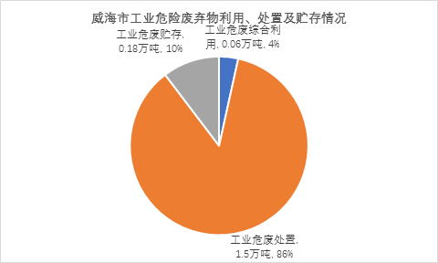 二、危險(xiǎn)廢棄物:同年度,威海市工業(yè)危險(xiǎn)廢棄物產(chǎn)生量為1.54萬(wàn)噸。