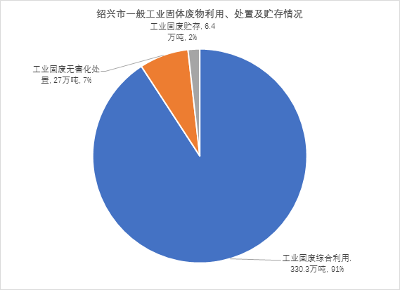 一、工業(yè)固體廢物:2017年,紹興市全市一般工業(yè)固體廢物產(chǎn)生量359.2萬(wàn)噸。利用、貯存和處置情況具體見(jiàn)下圖。