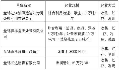 截止2017年,盤(pán)錦市擁有危險(xiǎn)廢棄物經(jīng)營(yíng)資質(zhì)的單位4家,如下表所示。