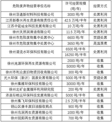 徐州市危險(xiǎn)廢棄物經(jīng)營(yíng)單位情況見(jiàn)下表。