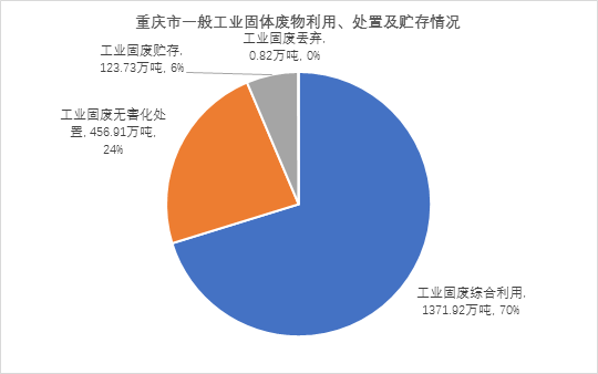 一、工業(yè)固體廢物:根據(jù)《重慶市固體廢物污染防治信息》,2017年,重慶市產(chǎn)生一般工業(yè)固體廢物1943.20萬(wàn)噸。利用、貯存和處置情況具體見(jiàn)下圖。