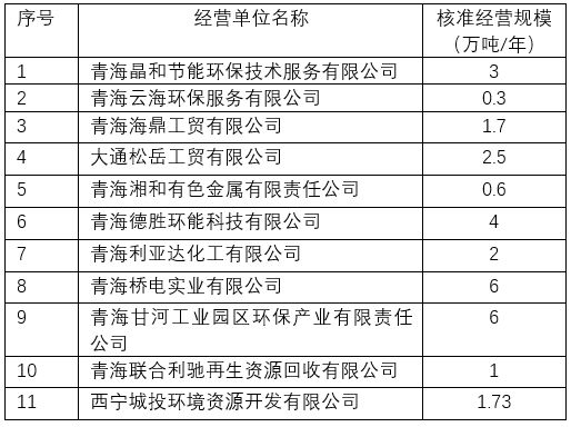 西寧市危險(xiǎn)廢棄物經(jīng)營(yíng)單位如下表所示。