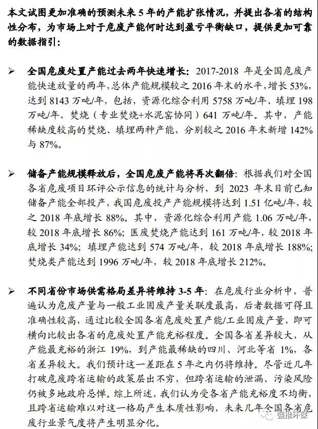 產(chǎn)能維持高速增長(zhǎng)、重申危廢行業(yè)“供需兩旺五年”邏輯