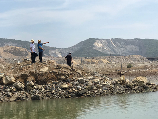 生態(tài)環(huán)境部派出的排查人員在排查現(xiàn)場通過手機(jī)對(duì)排查情況進(jìn)行錄入登記。郄建榮 攝