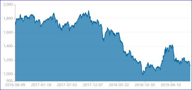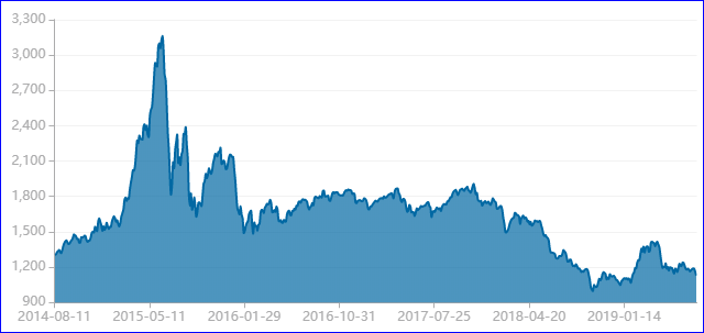 作為環(huán)保產(chǎn)業(yè)的“晴雨表”,行業(yè)指數(shù)的走勢聚集參考價值。我們來看看中證環(huán)保指數(shù)的3年走勢: