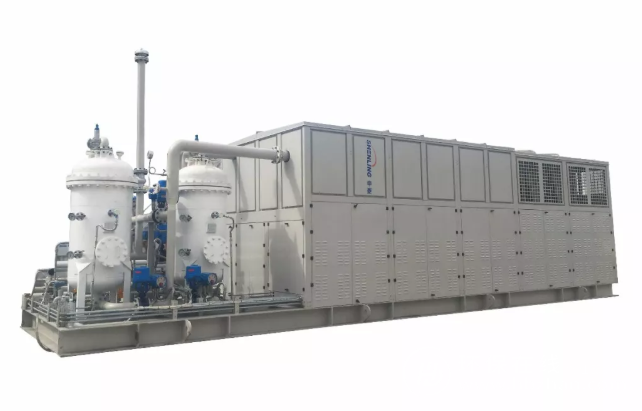 為契合現(xiàn)行及未來日益提升的環(huán)評(píng)標(biāo)準(zhǔn),創(chuàng)新應(yīng)用低溫制冷、吸附、催化氧化、臭氧凈化等技術(shù)及組合工藝的VOCs氣體冷凝回收裝置,對工業(yè)VOCs氣體進(jìn)行多組分、一體化冷凝回收直至尾氣達(dá)標(biāo)排放。尤其是,通過換熱器的特殊工藝設(shè)計(jì),整個(gè)工藝流程中揮發(fā)氣體各組分被連續(xù)冷凝,直接回罐利用且無二次污染。