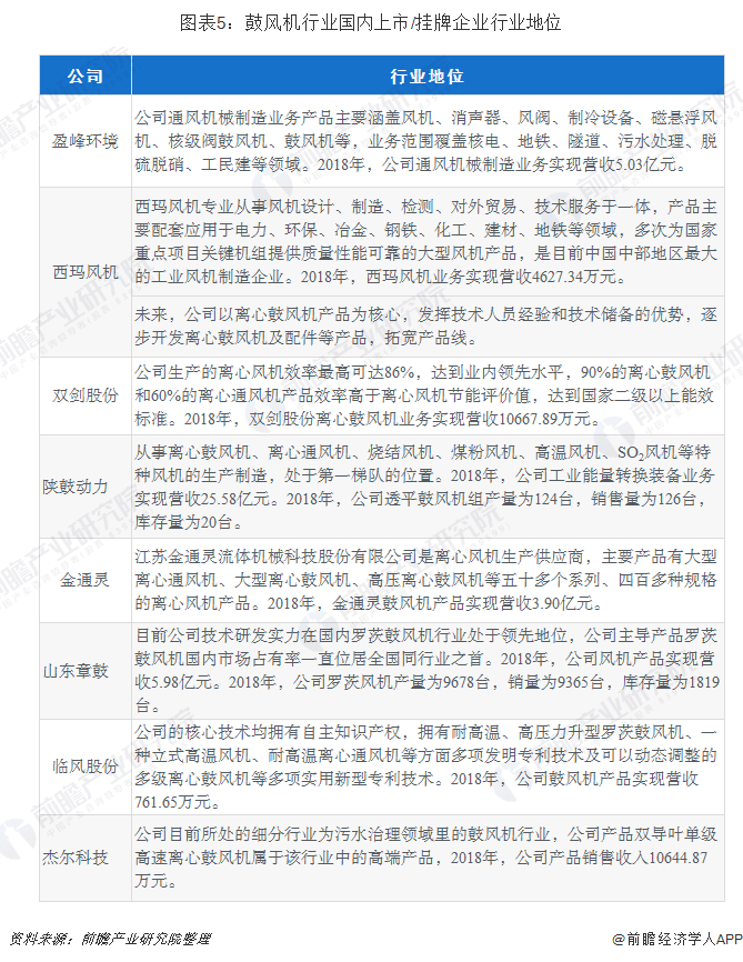 截止到2019年8月,涉及到鼓風(fēng)機(jī)業(yè)務(wù)的上市/掛牌公司共有8家。以陜鼓動(dòng)力為代表的上市領(lǐng)先企業(yè),無(wú)論是工業(yè)總產(chǎn)值還是主營(yíng)業(yè)務(wù)收入等指標(biāo),占據(jù)行業(yè)的權(quán)重均較大,說(shuō)明行業(yè)集中度較高。