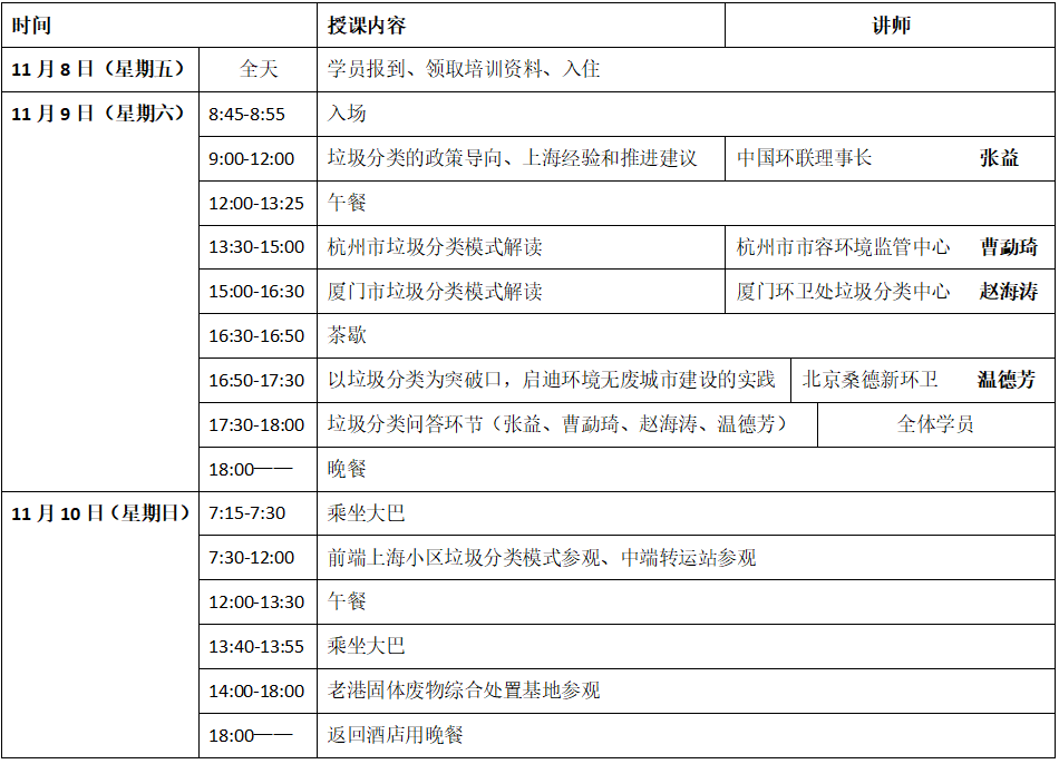 (一)培訓班將邀請垃圾分類主管部門相關(guān)負責人和行業(yè)知名專家授課,培訓班結(jié)束后頒發(fā)中國戰(zhàn)略性新興產(chǎn)業(yè)環(huán)保聯(lián)盟垃圾分類培訓結(jié)業(yè)證書。