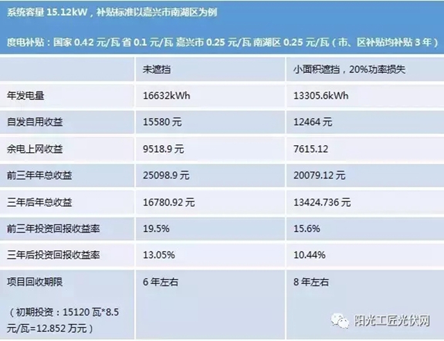 以這套15.12kW的系統(tǒng)為例,補(bǔ)貼標(biāo)準(zhǔn)以嘉興市南湖區(qū)為例: