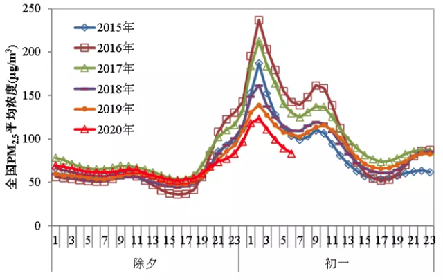 從近六年除夕夜間全國城市環(huán)境空氣質(zhì)量變化情況來看,2020年除夕夜間全國337個(gè)城市空氣質(zhì)量總體有所好轉(zhuǎn),PM2.5最大小時(shí)平均濃度較去年除夕夜下降了11.5%,較三年平均下降了28.1%。峰值污染期間全國重污染城市數(shù)量較去年減少了44個(gè),較三年平均減少了67個(gè)。