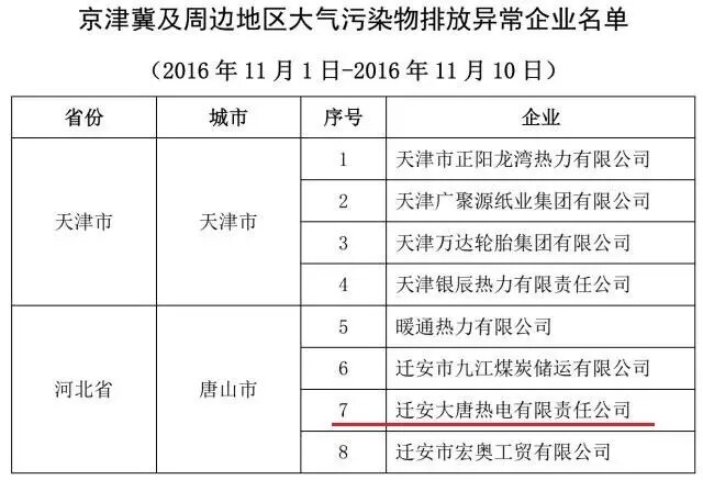 ▲11月1日至10日期間,京津冀及周邊地區(qū)大氣污染物涉嫌超標(biāo)排放的8家企業(yè)名單
