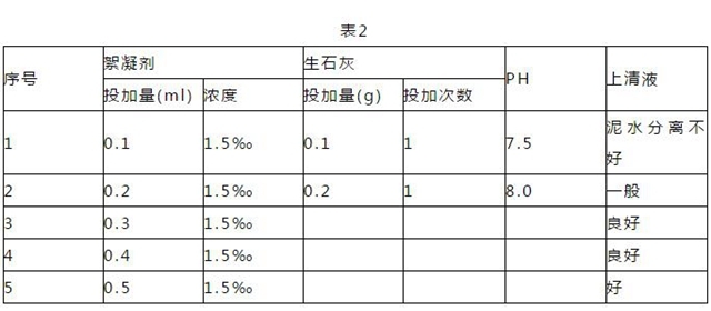 3月18日上午在專(zhuān)業(yè)人員的指導(dǎo)下,我們決定對(duì)2#氧化溝系列采用投生石灰和絮凝劑來(lái)控制氧化溝內(nèi)因污泥膨脹產(chǎn)生的褐色泡沫,投生石灰是為了殺死活性污泥中的絲狀菌(利用絲狀菌不能在堿性環(huán)境中生存的原理),投絮凝劑是為了增加活性污泥的沉降性能。首先做小試,確定生石灰和絮凝劑投加量,取2#氧化溝內(nèi)混合液1000ml,首加0.1g生石灰,測(cè)PH值為7.7,再加0.1g生石灰攪拌,測(cè)PH為8.03,小試后確定每升混合液中加0.2g生石灰,換算為每方0.2kg;然后向混合液中加1.5‰的絮凝劑從0.1ml開(kāi)始加至0.5ml時(shí),混合液的泥水分離較好,上清液變清亮,換算為每方混合液加1.5‰的絮凝劑0.5 kg。