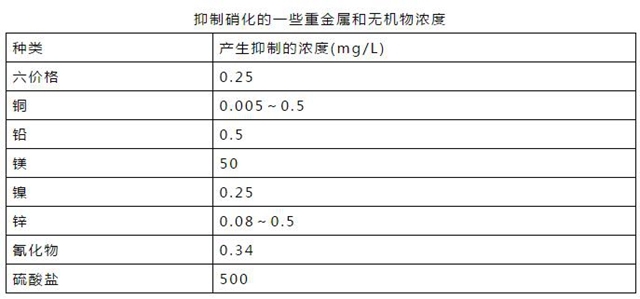 某些重金屬離子、絡(luò)合陰離子、氰化物以及一些有機物質(zhì)會干擾或破壞硝化細菌的正常生理活動。當這些物質(zhì)在污水中的濃度較高,便會抑制生物硝化的正常運行。例如,當鉛離子大于0.5mg/L、酚大于5.6mg/L、硫脲大于0.076mg/L時,硝化均會受到抑制。有趣的是,當NH3-N濃度大于200mg/L時,也會對硝化過程產(chǎn)生抑制,但城市污水中一般不會有如此高的NH3-N濃度。