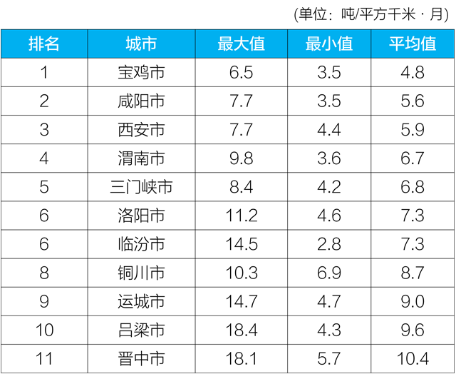 2020年4月汾渭平原11城市降塵監(jiān)測結(jié)果