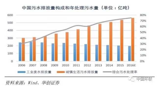 我國(guó)污水排放量構(gòu)成和年處理污水量