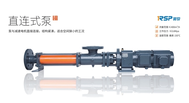 黃泵直連式單螺桿泵,泵體和減速電機直接連接,結(jié)構(gòu)緊湊,所需安裝空間更小,重量更輕,維修拆卸更簡便。適合輸送有固體顆?;蚶w維,流動性較好或一般的介質(zhì)。