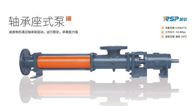 黃泵軸承座式單螺桿泵,減速機或電機通過軸承座驅(qū)動,運行穩(wěn)定,承載能力強,剛性好,維護方便。適合輸送有固體顆?;蚶w維,流動性較好或一般的介質(zhì)。
