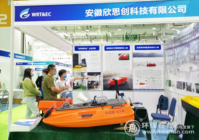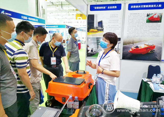 圖為展會(huì)期間,欣思創(chuàng)相關(guān)參展工作人員為專(zhuān)業(yè)人士介紹水文智能測(cè)流無(wú)人船