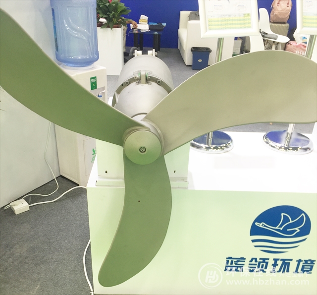 圖為廣州環(huán)博會期間 藍(lán)領(lǐng)環(huán)境攜MBBR填料專用推流器參展