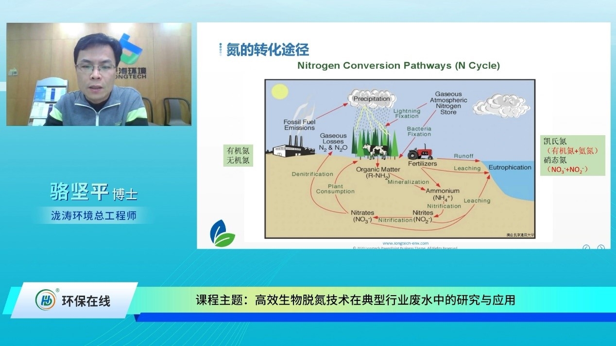 2020年12月23日14點,由北京瀧濤環(huán)境科技有限公司總工程師駱堅平博士帶來的“高效生物脫氮技術(shù)在典型行業(yè)廢水中的研究與應(yīng)用”線上課程如期開播,吸引了超過2000名網(wǎng)友到課聽講。