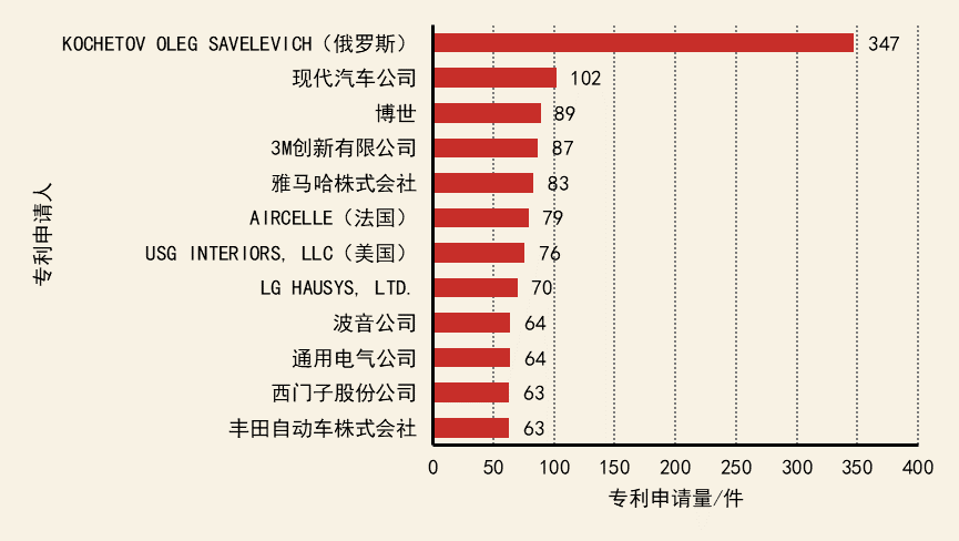 物理污染控制核心專利持有機構(gòu)分布
