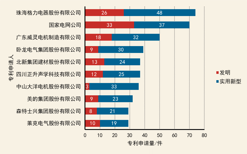 中國企業(yè)在該技術(shù)領(lǐng)域?qū)@暾堃詫嵱眯滦蜑橹?,大部分企業(yè)實用新型專利申請量占比60%以上,企業(yè)類型集中于電氣企業(yè),以機械噪聲控制居多。