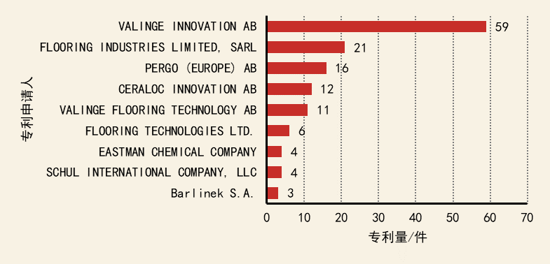 物理污染控制技術(shù)領(lǐng)域核心專利持有機構(gòu)有:VALINGE INNOVATION AB、FLOORING INDUSTRIES LIMITED, SARL、PERGO (EUROPE) AB、CERALOC INNOVATION AB、VALINGE FLOORING TECHNOLOGY AB。